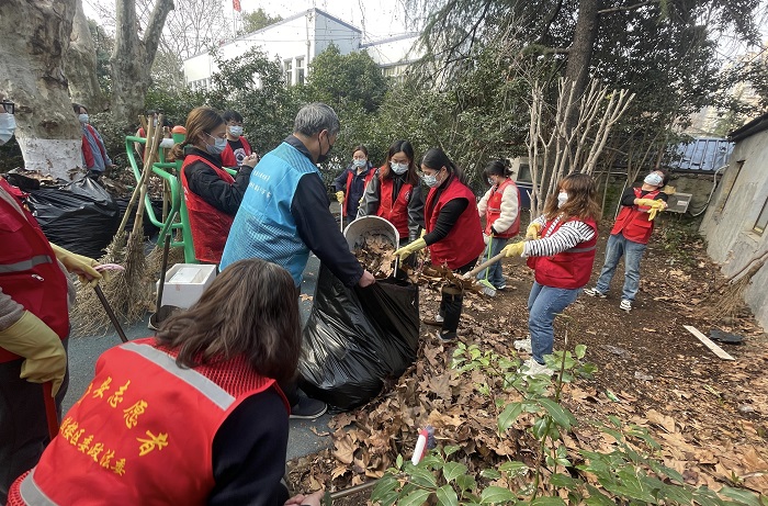 此次活動清理的是小區院墻外公共健身區域附近的一個衛生死角,植被茂密,地面的枯枝落葉積攢了厚厚一層,其中還夾雜著丟棄的各種垃圾。清理過程中,大家發揚不怕臟、不怕累的精神,手拿掃帚、垃圾袋等工具,重活臟活搶著干,分工明確、團結協作,一派熱火朝天的勞動景象。經過一個多小時的勞動清理出垃圾二十余袋,整個場地煥然一新。