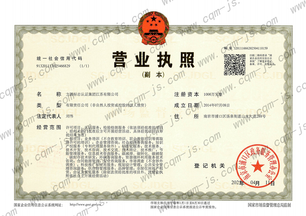 質量管理體系認證機構認可證書