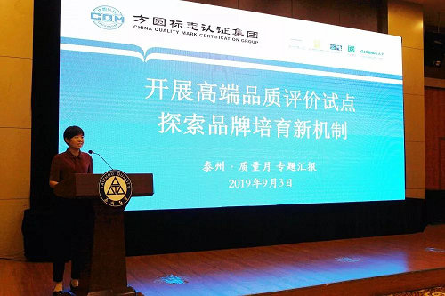 啟動儀式上,施曉彥總經理向首批通過“泰州品質”認證評價的企業頒發了證書,方圓江蘇公司客服部部長黃薇作了《開展高端品質評價試點,探索品牌培育新機制》的專題匯報。“泰州品質”認證評價試點工作是泰州市推進品牌建設的又一創新舉措。江蘇方圓積極參與泰州市品牌建設工作,按照相關要求,配合研究制定評價細則,經泰州市市場監管局評審通過,報泰州市人民政府備案發布實施。評價試點面向泰州市范圍內具有法人資格、合法生產經營的各類組織,試點組織及擬申請認證的產品、服務、體系等項目需達到國內領先、行業一流水平,不僅要有一流的產品和服務,還必須同時執行一流的標準,確保企業未來能繼續保持業內領先地位。