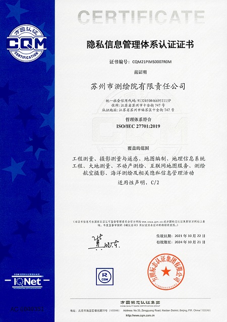 蘇州市測(cè)繪院有限責(zé)任公司本次獲得“隱私信息管理體系認(rèn)證”認(rèn)證證書(shū)的同時(shí),還通過(guò)了質(zhì)量、環(huán)境、職業(yè)健康安全、信息安全管理體系的再認(rèn)證審核,各體系運(yùn)行均保持較高水準(zhǔn)。蘇州市測(cè)繪院有限責(zé)任公司王建輝董事長(zhǎng)對(duì)本次認(rèn)證工作給予充分的肯定,并表示通過(guò)認(rèn)證,使本單位的信息安全維護(hù)更加規(guī)范,隱私信息管理水平得到顯著提升,為公司的高質(zhì)量發(fā)展奠定了基礎(chǔ)。