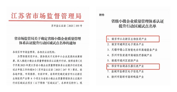 時間:2023年10月31日 日前,江蘇省市場監(jiān)管局印發(fā)了《關(guān)于確定省級小微企業(yè)質(zhì)量管理體系認證提升行動區(qū)域試點名單的通知》(蘇市監(jiān)認證函〔2023〕355號),南京市江北新區(qū)生物醫(yī)藥產(chǎn)業(yè)、淮安市金湖縣儀器儀表產(chǎn)業(yè)入選全省首批小微企業(yè)質(zhì)量管理體系認證提升行動區(qū)域試點項目。