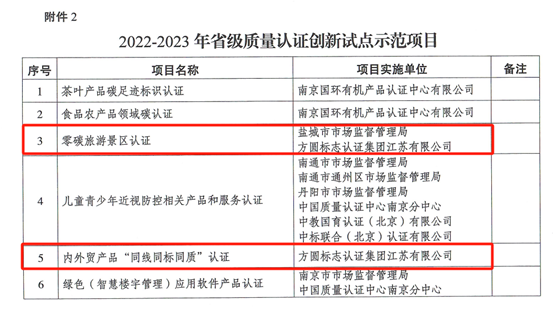 方圓江蘇公司持續擴大推廣2022-2023 “零碳景區”與“內外貿產品同線同標同質”認證試點示范項目應用范圍,充分發揮認證“傳遞信任、服務發展”的核心屬性,及其市場化、國際化的特點,與常州、鹽城市場監管部門協作聯動的工作格局,讓方圓真正成為政府部門和廣大企業的“簡單信任、放心選擇”。