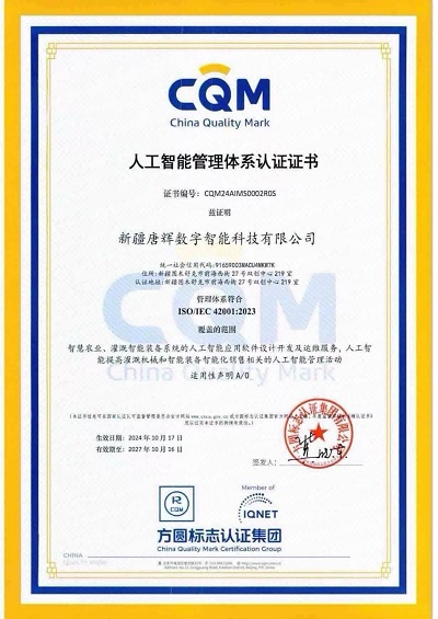 時間:2024年11月08日 近日,CQM方圓江蘇公司為新疆唐輝數字智能科技有限公司頒發了方圓集團首張基于ISO/IEC 42001標準的“人工智能管理體系”認證證書。
